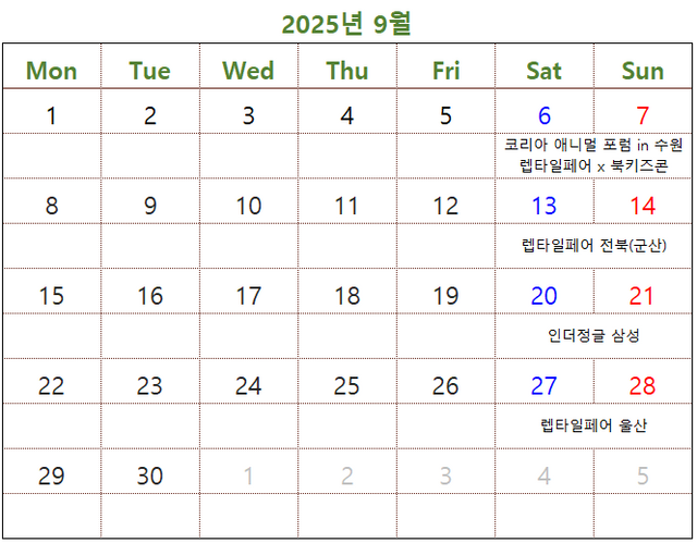 9월 6일 (토) ~ 9월 7일 (일) 렙토피아 (렙타일페어 x 북키즈콘) 수원